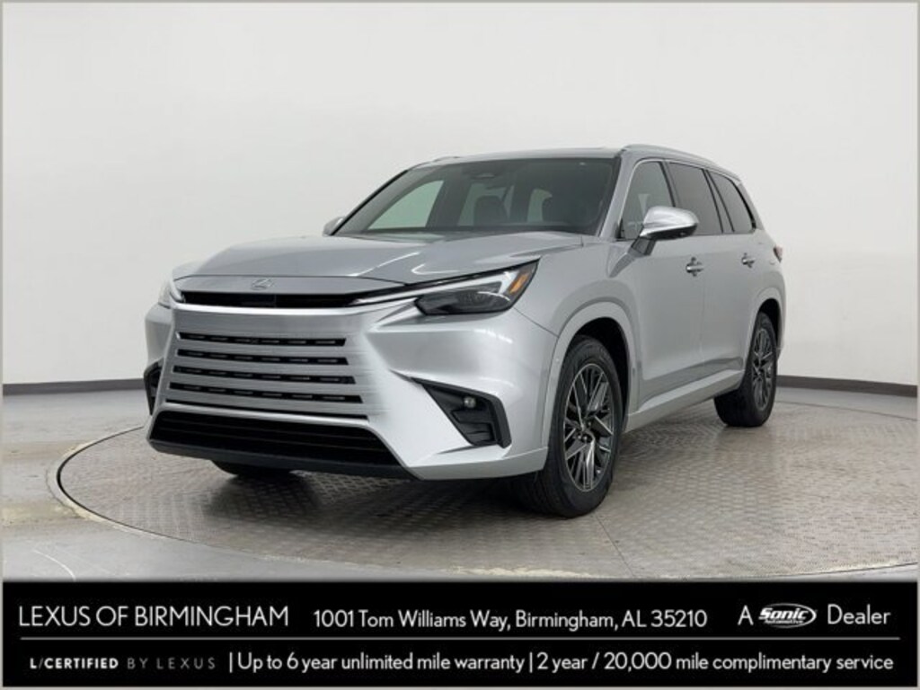 CERTIFIED PRE-OWNED, ONE OWNER, CLEAN CARFAX, 2025 Lexus TX TX 350, 2.4L 4-Cyl Turbo Engine with 275 HP, Heated & Ventilated Second-Row Captain's Chairs, Convenience Package: Front-Cross Traffic Alert, Traffic Jam Assist, Panorama Glass Roof, NuLuxe (R) - Trimmed Heated and Ventilated, Lexus Safety System+ 3.0, Blind Spot Monitor with Rear Cross Traffic Alert, Silver exterior, Black interior, and much more!